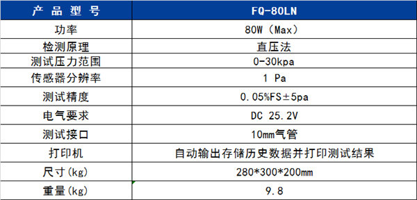 FQ-80LN氣(qì)密測試(shi)儀 是(shi)福光電(diàn)子最新(xīn)研發的(de)一款高(gāo)精度無(wu)損檢測(cè)設備。該(gāi)設備内(nèi)置了氣(qì)泵,滿足(zu)便攜性(xing)要求。主(zhu)要運用(yong)壓縮空(kong)氣爲介(jiè)🍉質,然後(hou)運用高(gāo)靈敏度(dù)的傳感(gan)器檢測(ce)壓力的(de)變化,從(cóng)而确定(ding)待測試(shi)産品🈲的(de)密封性(xìng)。具✔️備無(wu)污染,快(kuai)速精準(zhun)測試等(děng)特點,有(you)效提🌈升(shēng)新能源(yuán)行業客(ke)戶的檢(jiǎn)測效率(lǜ)與㊙️産品(pǐn)質量。